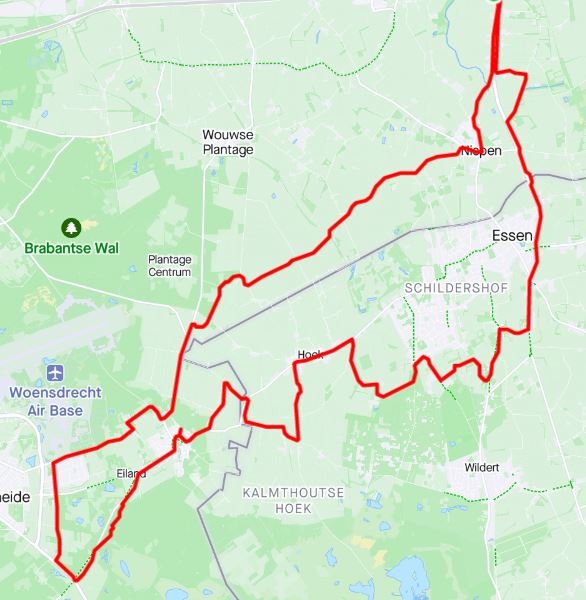 Groep 3 reed met 6 man een rit van 45 km. Na een lusje over Visdonk reden ze met de klok mee over Horendonk naar Nieuwmoer. Door de Mertensdreef reden ze naar de Wildert en over de Huybergsebaan en de Moerkantsebaan naar Essen-Hoek. Met nog een extra lusje over het Zandfort kwamen ze bij de koffiestop bij de Bostella. Over de Hollandse Dreef en de Grensstraat ging het tenslotte weer terug naar Huis ten Halve.