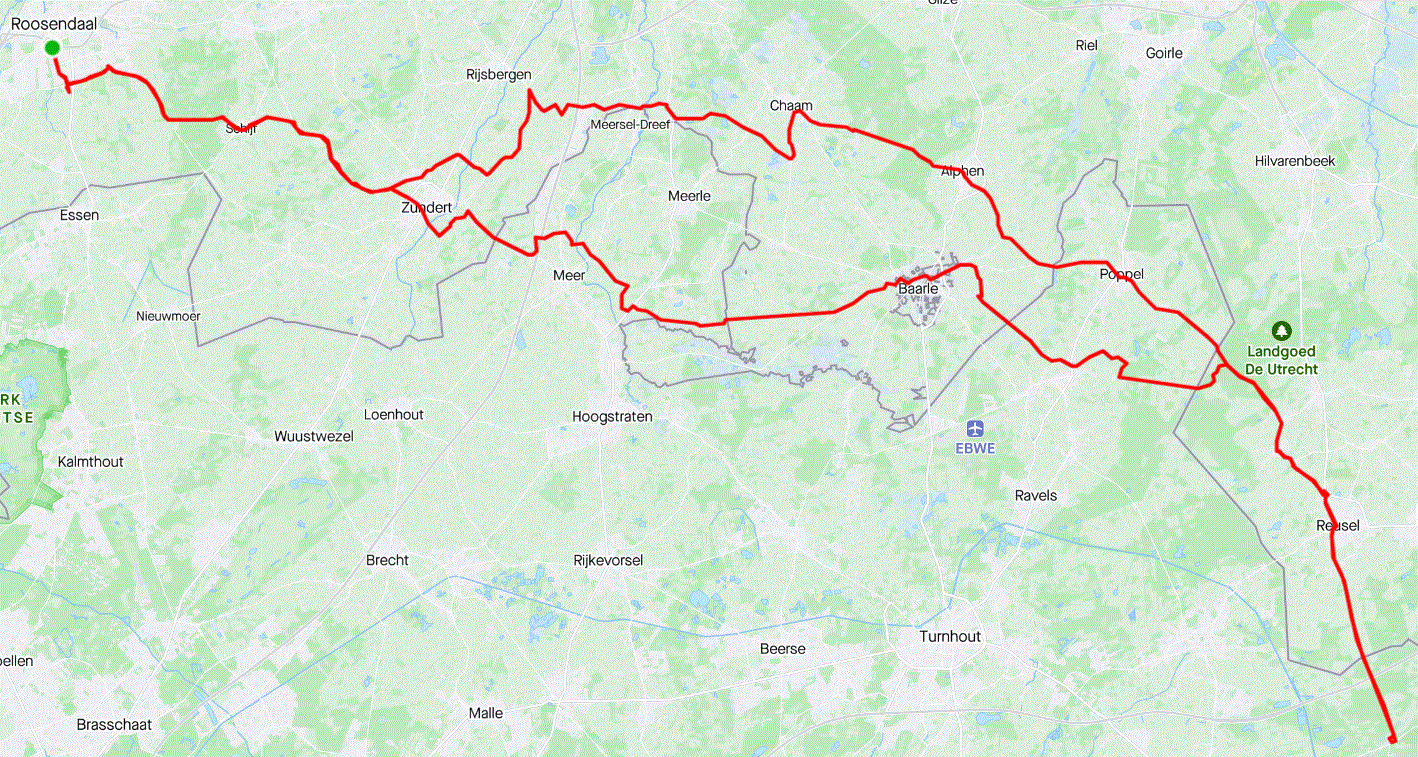 Groep 1 reed met Jan Verbocht een clubrit naar St. Lenaarts van 113 km. Jan mocht een groep van 16 man aanvoeren. Tot St. Lenaarts reden op kop: Toine, Chiel, Toon J. en Jan V. Toine was daarbij ingehuurd als “draaiorgel” en deed dat keurig om de 5 km. De rit ging over Nispen, Essen en Horendonk naar Achtmaal. De Ostaaijensebaan bracht ze bij Zundert, waarna ze via de Blauwputten de A16 overstaken naar Hoogstraten. Daar reden ze richting Baarle-Hertog, over Zondereigen richting Wortel en bovenlangs Rijkevorsel naar het kanaal, dat gevolgd werd tot St. Lenaarts. Onze voorrijder kreeg ondertussen wel gemopper vanuit de achtergrond, want na 70 km werd er bij Rijkevorsel al om koffie geroepen, maar deze was echter pas na 79 km!! Zijn we verwend of niet!!?? De stop in St. Lenaarts was bij café “De Klok”, tegenover de kerk; met een prima vlotte bediening en vlotte afrekening. Na de koffie nam Jan M. de plaats vooraan in van Toon J. Laatstgenoemde ging daarna achteraan de boel bijeen houden. Over vondel ging de terugweg naar Loenhout, waarna Achtmaal weer opgezocht werd via de Hespvenweg en de Steenpaalweg. over Nieuwmoer en Horendonk kwamen ze om 13.30 uur terug bij Huis ten Halve en konden ze terug kijken op een vlotte rit, zonder lekke banden of ander malheur.