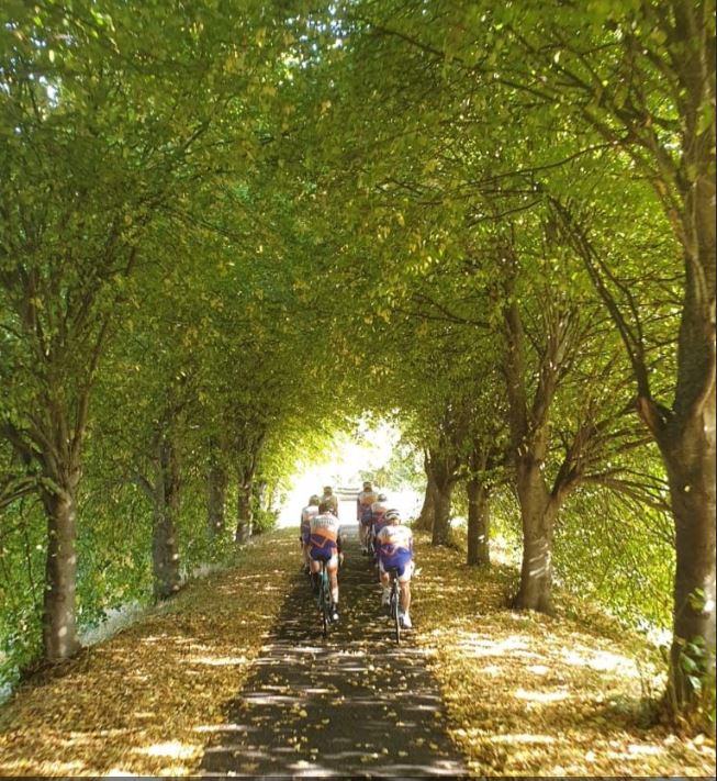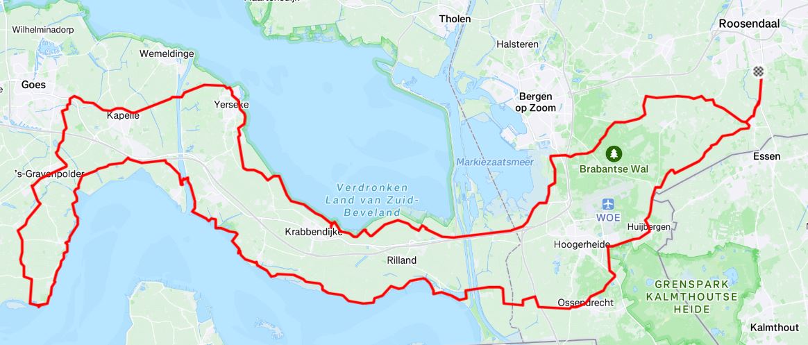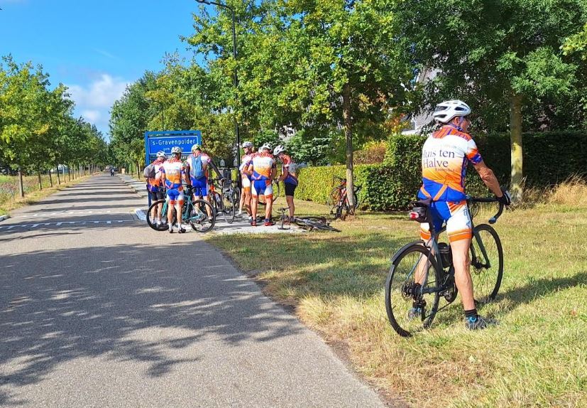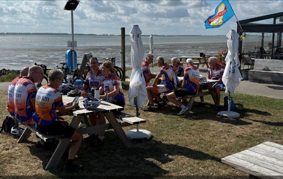 Bij groep 1 mocht Sigrid voor het eerst als toerleidster op pad met veel ( gelukkig wel veilige) mannen achter haar aan. Sigrid had de rit met Cees Mathijssen verkend en toen waren ze nog flink nat geregend. Deze keer zag het er een stukje beter uit. Zij begonnen beide op de koppositie. Toine van Oers en Jan Verbocht maakten het viertal compleet.13 Mannen, waaronder Cees van Sluijs die kilometers wilde maken in aanloop naar het clubweekend van volgende week, en 3 vrouwen sterk vertrokken ze over Nispen, de Brembosch en de Wouwse Hil naar de Westelaarsestraat om zo naar de Heimolen te rijden. Achter Mattemburgh langs werd de Oude Zeeuwse Weg opgezocht. Na de brug over het Schelde-Rijnkanaal reden ze langs de kassen en het Middenhof naar de Oosterscheldedijk die buitendijks gevolgd werd tot bijna bij Yerseke. Kort hierna verliet Jan Verbocht de groep en nam Nienke Peeters zijn koppositie over. De 15 overgebleven leden reden in Yerseke langs de Oesterputten naar de Postweg en over de Postbrug via Kapelle naar Kloetinge. Over Abbekinderen ging het naar 's-Gravenpolder, waar de toerleidster lek reed. Maar gelukkig waren enkele mannen zo lief om haar lekke band te repareren. Na het verwijderen van een stukje glas kon de band weer op spanning gezet worden. Langs de Vlindertuin in Langeweegje en Kwadendamme reden ze naar de rust bij De Landing aan de Westerschelde. Daar hadden ze 72 km op de teller staan. Waar de heenweg met tegenwind gereden werd ging de terugweg met rugwind. Jörgen bleef in Baarland achter. Ilse haalde hem daar op om nog een familielunch te gebruiken in 's-Gravendeel. De 14 overgebleven leden reden over de zeedijk langs het water. Hier werd met de rugwind menig persoonlijk record op Strava aangescherpt. Over de sluizen bij Hansweert ging het verder naar Waarde. Ook het Nauw van Bath werd langs het water gereden. Vanaf daar was het de bekende weg door de polder naar Ossendrecht en via Familyland, Huijbergen en Nispen naar Roosendaal terug. De eerste tocht van Sigrid als toerleidster was perfect verlopen onder mooie weersomstandigheden. De rit was 138 km lang.