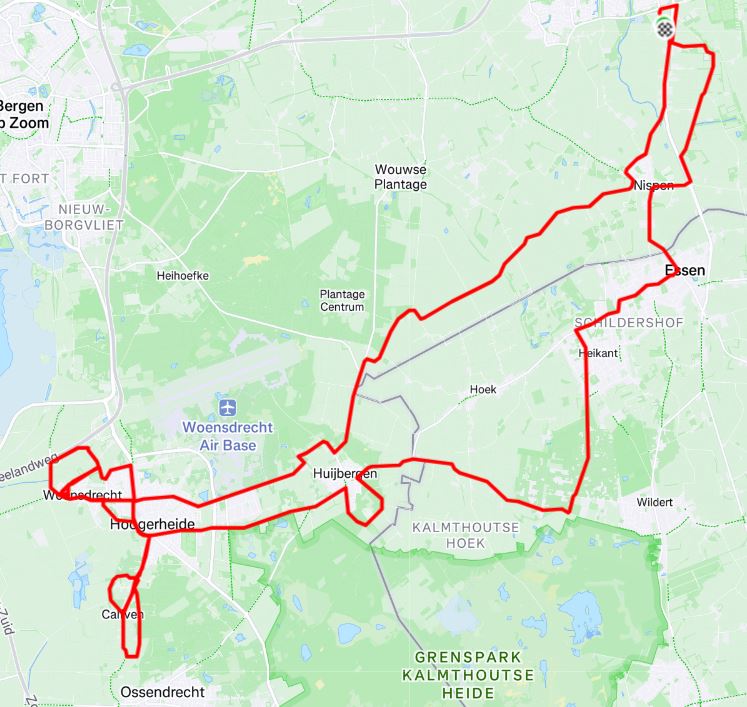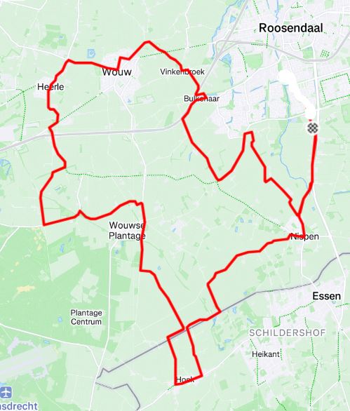 Groep 3 reed deze zondag precies 40 km. Over Nispen en het Everlandwegje reden ze eerst naar de Brembosch om via Haiinksestraat en Bulkenaar naar de Boterstraat te rijden. Over Wouw reden ze naar Heerle om na de Boerenweg de A58 over te steken en over de Zoomvlietweg en de Bleydenhoeksestraat de Schouwenbaan op te zoeken. Via de Hoeksebaan en de Vleetweg kwamen ze na 30 km bij de Bostella aan voor een lekkere bak koffie. Ook nu weer gingen de laatste 10 km over het Noordeneind, Kuilweg en Nispen terug naar Huis ten Halve. Ze waren deze keer met 18 man.