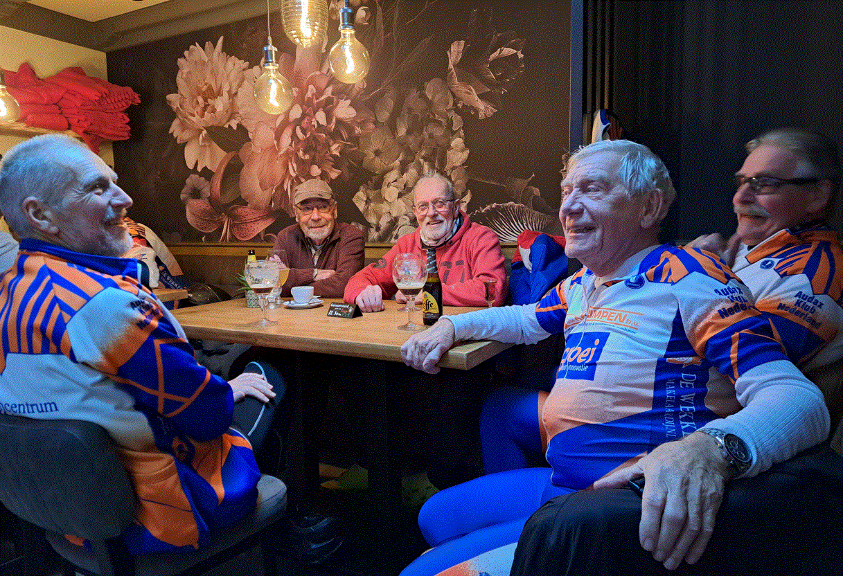 Toon Jansen vertrok al eerste met groep 1, zij startten met 12 leden. Toine van Oers , Gerard Mulders en Cees Mathijssen reden mee op de kop. Eerst werd er richting Nispen gereden om achterlangs naar Jagersrust en Schijf te rijden. Robert Buyle hield het vanwege de kou al snel voor gezien en draaide terug naar de warme kachel. Verder ging het naar Zundert en Meer. Rien van Hooijdonk reed hier onderweg nog lek. Hij lijkt ondertussen aardig op weg om goed voorbereid voor het lekke bandenklassement 2025 te gaan. In Meersel Dreef werd na onderling overleg besloten om bij Martens te stoppen voor de koffie. Adrien reed hier door naar Sprundel. De 10 leden lieten de koffie goed smaken en bij de kachel was het lekker warm. De terugweg ging door Rijsbergen en opnieuw Schijf naar de eindbestemming van de rit (Huis ten Halve was dit weekend gesloten) na 71 km bij Tivoli in Nispen.
