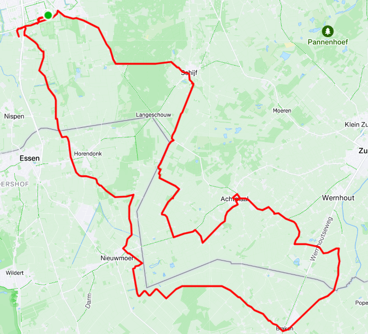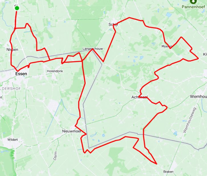 Groep 2 reed met Christ Schepers een clubrit naar Achtmaal. Het werd een niet te lange rit, want 's middags vierde Rian haar 70ste verjaardag bij Huis ten Halve. Weg ging het over Heiblok en het fietspad naar Kleine Horendonk om zo in Nieuwmoer aan te komen. Door De Maatjes reden ze naar de Hoofdbaan Watering om daarna scherp terug te draaien over de Polderstraat en Groenestraat naar Achtmaal. Na 31 km konden ze daar gaan genieten van de koeken en de koffie. Terug ging het rechttoe rechtaan over Lange Schouw terug naar Huis ten Halve. Deze groep was met 12 leden en zij reden 43 km.
