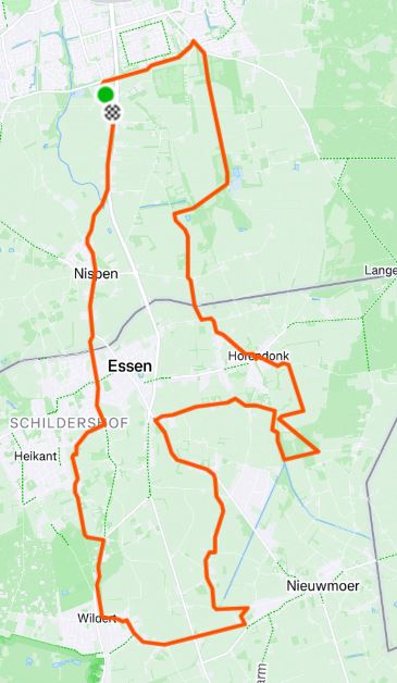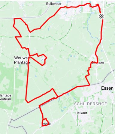 11 Leden hadden zin om een koffiestop bij Grenszicht in te lassen. Zij reden terug over de Putseweg, Abdijlaan, langs de manege in Huijbergen en de Weg naar Wouw om net voor Wouwse Plantage door de Wildersedreef, Heistraat en Julianastraat naar Nispen en Huis ten Halve te rijden. Met bijna 59 km op de teller kwam deze groep aan bij Huis ten Halve.Groep 3 had al snel in de gaten dat het behoorlijk waaide en hield het bij een kort ritje deze zondag. Theo besloot deze keer voor het eerst met groep 3 mee te rijden. John en Cees reden over Essen naar de Heikantstraat, Bontstraat, Bergenvenstraat, Velodreef en Huybergsebaan tot aan de Verbindingsweg. Daar ging het grootste gedeelte van de groep nog even linksaf voor een klein rondje Kalmthoutse Hoek (Achterstehoevestraat) en kozen enkele leden ervoor om de Huybergseweg af te rijden en over de Moerkantsebaan snel naar de Bostella te rijden. De doorzetters die de Kalmthoutse Hoek bewonderd hadden kwamen na 21 km aan bij de Bostella. Na de koffie restten nog 10 km via de Hollandsedreef naar Roosendaal. Ze waren deze keer met 14 leden.