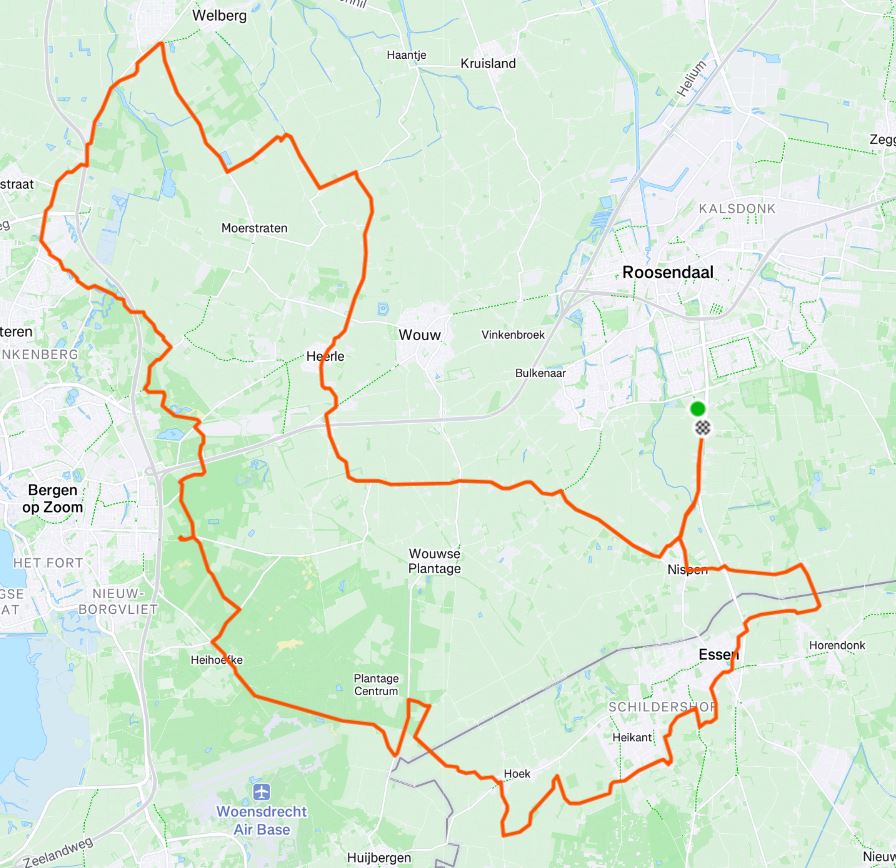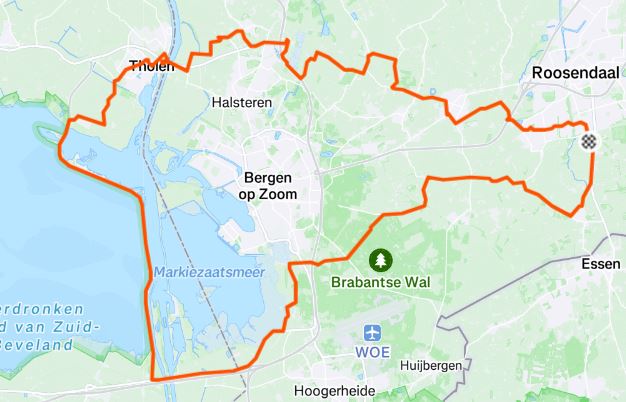 Zowel Toine als Alfons hadden een ritje naar Rilland in de planning. Toine zou bij de Shell in Rilland koffie drinken en Alfons had koffie en appelflappen besteld bij de voetbalkantine van Rillandia. Na kort overleg werd besloten om samen de 80 km lange clubrit Rilland van groep 1 te rijden. De groep van vier, met naast Alfons en Toine, Gerard Mulders en Nienke, vertrok door de Tolberg naar de Wouwse Hil en reed via Brasserie BOZlust naar Heimolen, waar voor Mattemburgh langs de Antwerpsestraatweg gevolgd werd tot Hoogerheide. Via de makkelijke kant reden ze de Rijzende Weg over om daarna langs Non Plus Ultra de polder in te rijden richting Völckerdorp. Tot dan toe hadden ze enkel wat last gehad van wat gemiezer en de sterke wind tegen, maar daarna was het klaar met zachtjes regenen. De regenjasjes gingen aan en de hemelsluizen open. Alhoewel het voetbalveld van Rillandia verleidelijk dichtbij lag werd de lange weg door de polder gewoon uitgereden en kwam er nog een stuk Oude Rijksweg achteraan tot aan de Stationsbuurt. Gerard had er zo zijn twijfels over... Maar gelukkig stond vanaf dat moment de wind in de rug. Aangekomen bij Rillandia stond het vol met toeschouwers onder het afdak van de kantine, die de 4 doorweekte fietsers met respect (en misschien stiekem ook wel een beetje onbegrip) begroetten. Om toch nog een paar vrienden binnen de club over te houden nam Alfons de koffie en de appelflappen voor zijn rekening. Na een half uurtje konden de kantinevrijwilligers de vloer gaan dweilen, gingen de natte kleren weer aan en werd aan de laatste 37 km begonnen. Met wat kleine omwegen over de kasseien van de voormalige Haven van Ossendrecht en door de Trambaan kwamen ze in Ossendrecht. Daar werd nog even het Hageland meegenomen in de route om tenslotte langs het Puts Meuleke, Putseweg, Abdijlaan, Huijbergen, Plantagebaan, Ouwerveldenweg en Nispen met precies 80 km terug bij Huis ten Halve in de stromende regen aan te komen. De thuisblijvers hadden duidelijk gelijk deze keer!