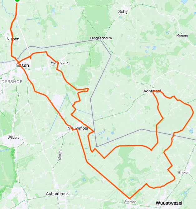 Groep 3 dronk koffie in Achtmaal. Jos Dierks was de toerleider. Zij waren met 7 man. Over Essen, Nieuwmoer en de Nieuwmoerse Steenweg reden ze tot aan het Sterbos om daar af te slaan richting Braken. Over de Huisheuvelstraat, Kalmthoutsebaan en Ostaaien waren ze na 28 km bij de Toekomst in Achtmaal. Na de koffie en de koekjes reden ze door de Kraaiheuvelstraat, Groenestraat, Hoofdbaan Watering en de Maatjes naar Nieuwmoer en de rit werd afgemaakt door de Venetiaanse Heide, Kievitstraat, Horendonk, Steenpaal en Essen. Ze reden 53 km.