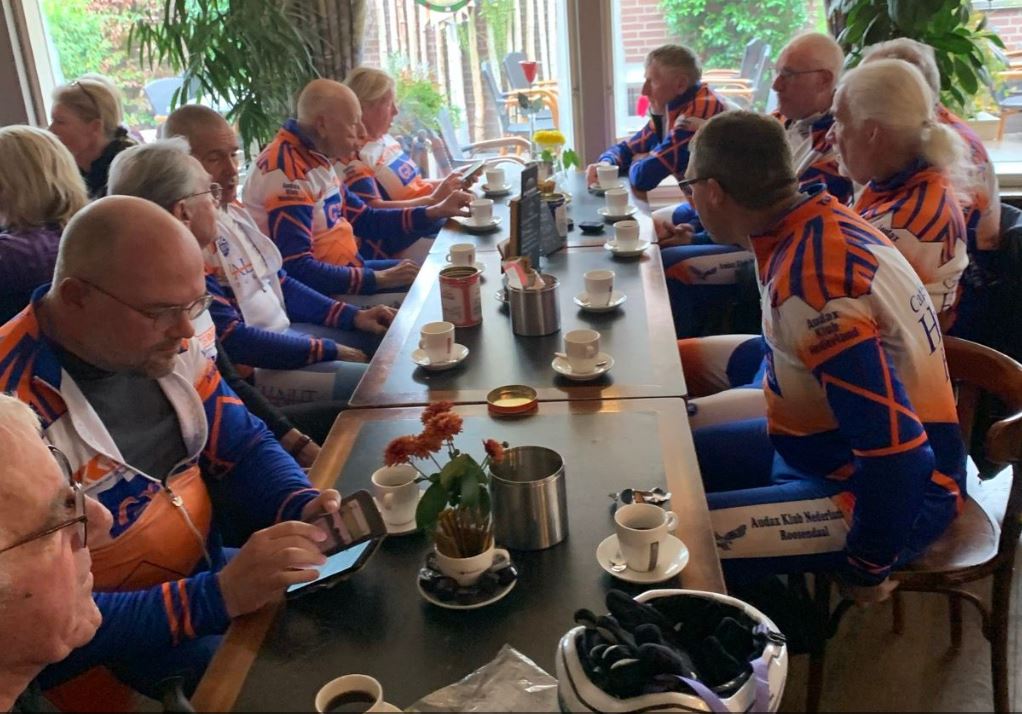 Het was goed te zien dat Peter Schoonen na de afloop van de rit weer aanwezig was. A.s woensdag wil hij weer bij de groep op de fiets aansluiten.