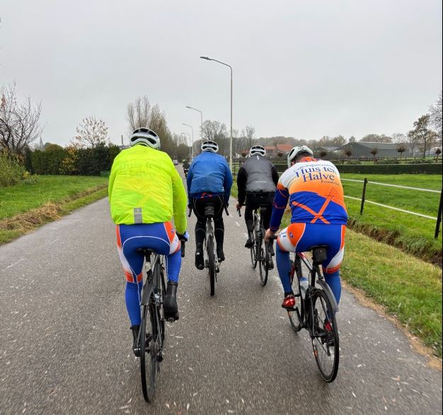 Zondag 16 november was het bij de start nog maar een graad of 5, maar er woei slechts een zwakke noordoostenwind en het was droog. Geen vervelend weer voor een winterwegrit. Zeker niet als de voorzitter bij de start een heerlijk bakje erwtensoep bij terugkomst bij Huis ten Halve in het vooruitzicht stelt.