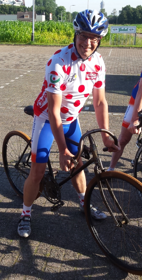 Zondagochtend 10 juli stond de singlespeedrit van Jan en Jacques op het programma. Jan maakte indruk door met een 110 jaar oude fiets aan de start te verschijnen: een Cyclop met alleen een rem bovenop de voorband. Jan vertrok hierop, wat bij sommigen van de 23 leden de wenkbrauwen wat deed fronsen, want de voorrem zat ook nog eens los. Maar Mieke was goed geïnstrueerd en stond bij de poort klaar om de fiets van Jan om te wisselen voor een iets moderner exemplaar, met 2 remmen. In Nispen was alles al afgezet voor de plaatselijke wielerronde, maar dat gold natuurlijk niet voor onze groep 1. Die wisten toch een gaatje te vinden om op de Bergsebaan te komen. Zo reden ze naar de Heimolen en achter en aan de zijkant van Mattemburg langs. Over de Oude Rijksweg reden ze richting Rilland, waarbij Jörgen en Toon de Tweede Hoogewaardse Dwarsweg verkozen boven het fietspad. Na de brug reden ze langs het Spuikanaal en weer terug over de Bathse brug om linksaf naar Non Plus Ultra te rijden. Natuurlijk werd de Rijzende Weg alsnog genomen, want daar zijn die singlespeeds voor gemaakt! Door de Onderstal reden ze daarna langs de kerk naar Huijbergen. Daar werd een rondje langs de manege in het parcours opgenomen, om daarna over Essen-Hoek en Essen terug te rijden. Dat gebeurde met een extra bochtje rondom Nispen, om problemen met de coureurs aldaar te vermijden. In de eindsprint mengde zich ook nog even Hans, maar die moest de eerste plaats toch aan een ander overlaten.