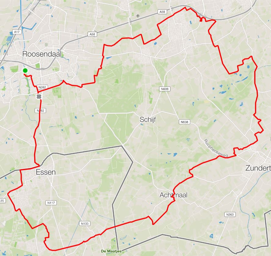 Groep 2 is met Tonnie om half negen vertrokken voor de 80 km. Het was nog fris. 14 graden. De meesten hadden of lange mouw of hun armwarmers aangetrokken. Zij waren met 13 leden. Via Nispen en de Nigtestraat zijn ze naar het betonnen fietspad langs de Grensstraat gereden. Daarna door Hoek naar Huijbergen, Ossendrecht en na de brug over het kanaal bij Bath langs het golfterrein naar de koffie bij De Volle Ton in Zandvliet. Via Berendrecht, Stabroek, de villawijken van Kapellen en Heide reden ze naar de Verbindingsstraat van de Kalmthoutse Heide. Via Essen-Hoek ging het tenslotte door de Schouwenbaan naar Nispen en Roosendaal. In totaal was terug bij Huis ten Halve 78 km afgelegd.