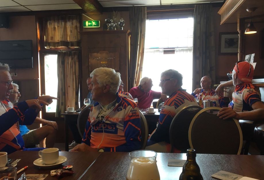 Op zondag waren er in totaal 23 deelnemers. Eenlingen: Theo, Willy, Arnold v.d. Maat, Gerard, Pierre, Jan Mulders, Cees Mathijssen, Alfons en Wim Hoogendam. Tweelingen oftewel duo’s: John van Turnhout en Willem Edam, Henny Manniën en Robert Buyle, Kees Baaten en Frans van Geloven, Ad van Haperen en Toon Jansen, Kees Ruyten en Marcel Blommers, Ilse en Jörgen, John van Houten en Kees de Greef. 6 Leden hebben de controle van Jos Vos bij de Appelaarseweg gemist: Alfons, Jan Mulders, John en Willem, Ad en Toon. Het aantal gereden kilometers varieerde ook sterk, want er werd deze keer veel verkeerd gereden. Sommige leden kwamen met 50 km rond en anderen hadden 70 km op hun Strava staan toen ze bij Huis ten Halve terug waren. Genoeg stof om over na te praten dus.