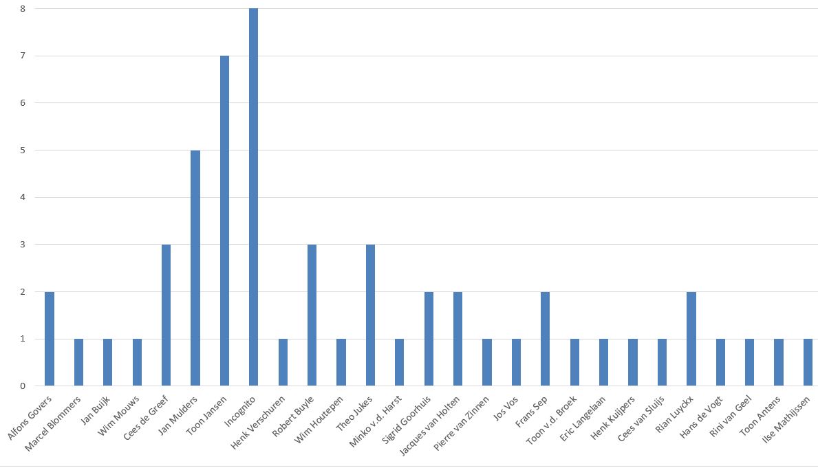 Het zal toch niet zo zijn dat ons lid dat incognito in het klassement vermeld staat nog ingehaald wordt door Toon Jansen? Komend weekend sluiten we het zomerseizoen af en zullen we het weten!