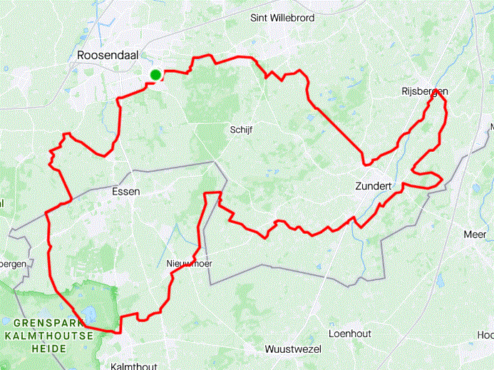 Groep 1 reed met Toon Jansen zijn Rondje rond Roosendaal, althans dat was de bedoeling, maar met alle wegwerkzaamheden die er momenteel gaande zijn moest er nogal wat aangepast worden en reed Toon de laatste 30 km alternatief. De route werd nu 59 km lang en de 15 deelnemers reden over de Oude Turfvaartsebaan, Heybeeksestraat en Heiblok door de Lange Schouw naar Schijf. Daar reden ze linksaf naar Rucphen en zo door naar Bosschenhoofd. Langs de A58 reden ze daar terug naar de Dijkrand en kwamen ze over de Achtmaalsebaan weer terug bij de Lange Schouw. Door Scham en de Blikstraat reden ze toen naar Nieuwmoer, om via de Mertensdreef, de Wildert, Oude Baan en Essen met een ommetje door de Nigtestraat over Nispen weer terug te rijden.