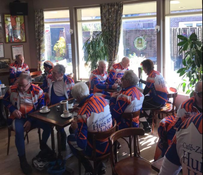 De gisteren gevallen Kees Baaten was ook op de koffie-afspraak. evenals Willy van Toren en de alweer voorzichtig in training zijnde Ad van Iersel.
